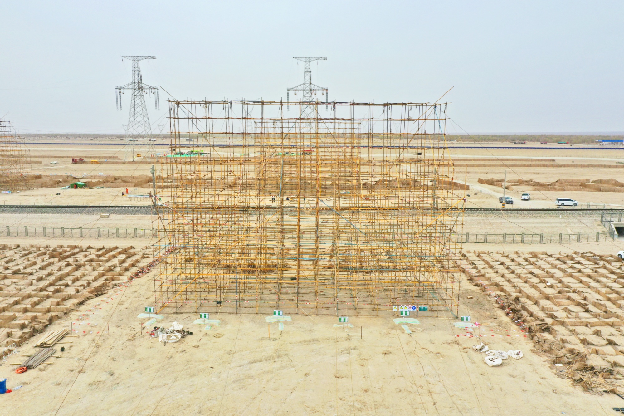 “现在我们正在进行格库铁路跨越封网工作,其中跨越架搭设、封网已结束,下一步我们将进行导地线展放工作。”山东送变电工程有限公司项目经理刘建立介绍。